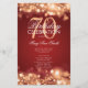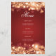 Design de "Programa de Festa de aniversário" elegante com faíscas e luzes em vermelho Dourado com texto personalizado.