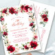 As rosas vermelhas elegantes e as peônias cor-de-rosa estão aninhadas em folhas verdes escuras para criar um belo quadro floral que rodeia os seus detalhes de aniversário. A caligrafia tradicional e clássica adiciona uma estética luxuosa à design. Terá orgulho de enviar isto aos seus convidados.