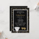 Este convite de aniversário 70 apresenta um confete dourado sobre preto no fundo com um vidro e o fazer "70" para um convite de excelente para uma festa de aniversário 70. Direitos autorais