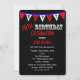 Este convite de aniversário 70 divertido em vermelho, branco e preto apresenta sinalizadores ao longo do topo em vermelho e branco com HAPPY soletrado nas bandeiras. As palavras Celebração de 70 BIRTHDAY estão abaixo das bandeiras, assim como os detalhes de sua festa de aniversário. Este é um bom convite para uma comemoração de 70. Direitos autorais