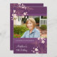 Fotos personalizadas de Festa de aniversário de 70 em elegante e moderno roxo escuro, cor-de-rosa-coral e branco com delicado padrão floral japonês. Personalize esses convites com sua própria foto e texto para criar um convite de celebração de aniversário verdadeiramente único.