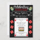 Os convidados vão adorar o tema do cassino para este convite de aniversário especial de 70 para uma senhora especial que adora apostar. Completado com dados, chips e a carta da rainha dos corações, esse convite de aniversário de 70 é fácil de personalizar preenchendo o modelo fornecido.
