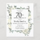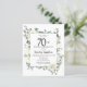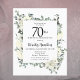Convite de aniversário elegante apresenta um quadro botânico de flores brancas e folhas verdes profundas. O nome da pessoa de aniversário é escrito em um texto tradicional. Todo o texto pode ser facilmente editado para criar apenas o tom comemorativo correto.