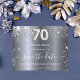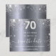 Um elegante cartão Save the Date para uma festa de aniversário 70. Um fundo metálico moderno, falso e prateado, decorado com poeira falsa. Personalize e adicione uma data e nome/idade. O texto: Salvar a Data é gravado com um script de estilo com letra de tendência grande. Número 70 com uma fonte no estilo do balão.