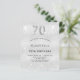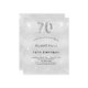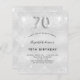 Um convite moderno, na moda e glamouroso para uma festa de aniversário 70. Um fundo com aparência de prata falsa, decorado com poeira brilhante. Personalize e adicione o seu nome e detalhes da festa. O número 70 é escrito com uma fonte de estilo de balão, script.