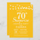 Surpresa 70 de Aniversário com Luzes de Cordas. Fundo amarelo e branco. Homens ou Mulheres Aniversário. 13 15 16º 18º 20 21rua 30 40º 50º 60º 80 de 70 100º, qualquer idade. Para mais personalização, clique no botão "Personalizar" e use nossa ferramenta de design para modificar este modelo.