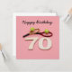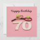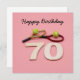 Aniversário de tênis 70 com bola e raquete no cartão cor-de-rosa