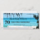 Uma bela imagem do lado do mar é o fundo para este convite de praia tropical de destino de embarque. Um convite personalizado de destino divertido. praia tropical com azul aqua e texto moderno.