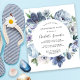 Os peões azuis empoeirados formam um quadro redondo em torno de seus detalhes de festa de aniversário neste elegante convite orçamentário.