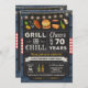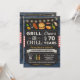 Convite de aniversário de churrasco Grill e Chill, com conselho de giz e inscrição com idade personalizável.