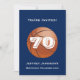 Uma bola de basquete sobre um fundo azul escuro enfeita este 70 único e divertido ou 75º Convite à Celebração de Aniversário. O inverso tem letras brancas sobre fundo vermelho. Você pode personalizar facilmente o nome, QUALQUER idade, evento, data etc. Os fãs do esporte vão adorar! Todos os Direitos Reservados © 2019 Alan & Marcia Socolik.