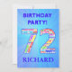 72º Convite de aniversário. Adicione um nome e seus detalhes para fazer um convite de aniversário fantástico. Os números são feitos de palavras ligadas aos aniversários para que todos fiquem de bom humor!