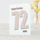 Um cartão de 72 anos muito moderno. Esta carta é realmente fabulosa. Grandes letras em listras modernas num fundo azul. Personalize para sua própria mensagem exclusiva.