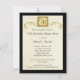 Convites de aniversário personalizados formais — Convites de fotos em preto e ouro elegantes, mas masculinos, com sotaques dourados detalhados e monogramas em parlamento simulado. Adicione sua própria foto e personalize o nome, a data e os detalhes da ocasião feliz. Perfeito para fotos contemporâneas ou antigas. Combinando envelopes, correio e cartões de agradecimento disponíveis. **NOTA: Dimensionado para cartões de convite SMALL 4.25 x 5.5. Outros tamanhos e estilos disponíveis na galeria.