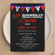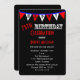 Este divertido 75º convite de aniversário apresenta a palavra FELIZ ao longo do topo, em bandeiras brancas e vermelhas, em um pano de fundo preto. A comemoração do 75º aniversário aparece abaixo das bandeiras, assim como seus importantes detalhes de convite para a 75ª festa de aniversário. Esta é uma bandeira da tipografia moderna convidada para uma comemoração de 75 anos. Direitos autorais