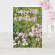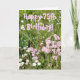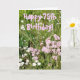 Fotografia de algumas flores selvagens bonito tomadas o fim da tarde. Texto cor-de-rosa: "75th aniversário feliz!" Interior na rotulação azul: Tenha um dia maravilhoso!