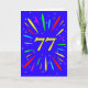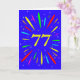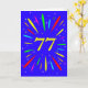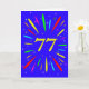 Um cartão de aniversário de 77 anos explosivo! Que maneira maravilhosa de enviar cartões de aniversários. O número 77 em amarelo brilhante com uma explosão de cores brilhantes e estrelas.