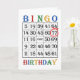 77.º Cartão de aniversário. Diga Parabéns a um jogador de bingo com um cartão de bingo. A idade está circulada em vermelho. Um jogador maluco do bingo vai ter um grande pontapé neste cartão! Norma Cornes.
