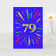Um cartão de aniversário explosivo 79º! Que maneira maravilhosa de enviar cartões de aniversários. O número 79 em amarelo brilhante com uma explosão de cores brilhantes e estrelas.