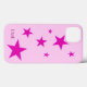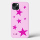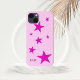 Sete estrelas de cinco pontas diferentes, de tamanho brilhante, na fúcsia, com um contorno roxo mais escuro sobre um fundo fuchsia muito pálido. Texto cor-de-rosa profundo personalizável para iniciais no canto inferior esquerdo