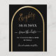 A Save the Date card for a 80 festa de aniversário. Um fundo preto, decorado com um arco de ouro falso. Personalize e adicione uma data e seu nome. O texto: Oitenta e Salvar a Data é gravado com um script de estilo com letra de tendência grande. 1 folha = 1 salve a data da borda impressa em borda.