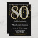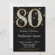 Um elegante convite de aniversário de preto e ouro, com 80 grandes diamantes e aparência de ouro junto com uma cortina de ouro brilhante. Para o 80 na sua vida.