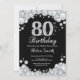 Convite de Aniversário de 80. Fundo do Quadro de Diamantes do Silver Rhinestone. Convite para o Elegante Birthday Bash.Preto & Branco. Aniversário Adulto. Aniversário das mulheres. Homens Aniversário.