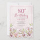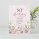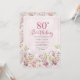 Adorável convite de aniversário de 80 com um fundo floral padronizado. © Mini Moi Impressões