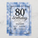 Convite de aniversário de 80 com luzes azuis de cordas com fundo azul brilhante. Aniversário Azul. Aniversário Adulto. Homens ou Mulheres no Dia Convidam. 13 15 16º 18º 20 21 rua 30 40º 50º 80 de 60º 70 de 100º, qualquer idade. Para mais personalização, clique no botão "Personalizar" e use a ferramenta design para modificar este modelo.