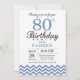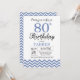80 Aniversário com Blue Chevron.Preto & Branco. Aniversário Adulto. O Dia do Homem ou da Mulher Convidam. Para mais personalização, clique no botão "Personalizar" e use a ferramenta design para modificar este modelo.