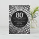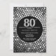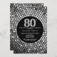 Convite de Aniversário de 80. Negra e Silver Glitter. Diamante de Prata.Festa de aniversário para adultos. Para Homens ou Mulheres.