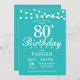 80 Birthday Invitation com luzes de cordas. Fundo do Teal Aqua Turquoise. 13 15 16º 18º 20 21 rua 30 40º 50º 80 de 60º 70 de 100º, qualquer idade.