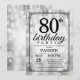 80 Birthday Invitation com luzes de cadeia de prata com fundo de brilho de prata. Aniversário de Prata. Aniversário Adulto. Homens ou Mulheres no Dia Convidam. 13 15 16º 18º 20 21 rua 30 40º 50º 80 de 60º 70 de 100º, qualquer idade.