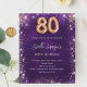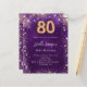 Celebre um 80 especial de aniversário com este convite maravilhoso, perfeito para uma festa elegante. O fundo roxo profundo apresenta uma bela textura irregular, acentuada por rosa dourado e faíscas ouros. O nome é escrito em um texto delicado, escrito à mão, acrescentando um toque personalizado e sofisticado. Personalize o convite adicionando o nome e todos os detalhes importantes da parte. Este design luxuoso dá o tom para uma celebração inesquecível. 1 folha = 1 convite impresso de borda a borda.