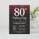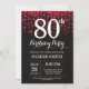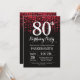 Convite de aniversário de 80 com luzes de cordas vermelhas com fundo brilhante vermelho. Aniversário Vermelho. Aniversário Adulto. Homens ou Mulheres no Dia Convidam. 13 15 16º 18º 20 21rua 30 40º 50º 60º 80 de 70 100º, qualquer idade. Para mais personalização, clique no botão "Personalizar" e use nossa ferramenta de design para modificar este modelo.