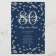 Design de "Programa de Festa de aniversário" elegante com Confetti Glitter em Prata e Marinho com texto personalizado.