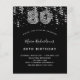 Um convite moderno, na moda e glamouroso para uma festa de aniversário 80. Um fundo preto, decorado com um confete prateado. O nome é escrito com um moderno estilo escrito à mão. Personalize e adicione os detalhes da sua festa. O número 80 é escrito com uma fonte do estilo do balão, padrão leopardo. 1 folha = 1 convite impresso de borda a borda.