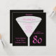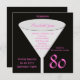 Este convite de aniversário foi feito para as mulheres à medida que apresenta as cores preto e rosa quente. Um copo é o ponto focal com o nome da honra de aniversário e o dentro de detalhes da festa de aniversário. O número 80 aparece na parte inferior direita em rosa quente. Este convite de aniversário 80 é um design muito moderno para ela. Direitos autorais