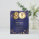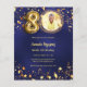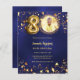Um convite para fotos moderno e na moda para uma festa de aniversário 80. Um fundo azul marinho, decorado com estrelas ouros. A cor azul é irregular. Personalize e adicione sua foto e detalhes da festa. 1 folha = 1 convite impresso de borda a borda.