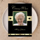 Este convite de aniversário em preto com acentos de ouro mostra sua foto como o ponto focal, junto com um lugar para você colocar o nome da honra de aniversário logo abaixo da foto. É uma maneira adorável de convidar convidados para uma festa de festa de aniversário adulta 80. Direitos autorais