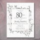 Convite de aniversário elegante apresenta um quadro botânico de flores brancas e folhas verdes profundas. O nome da pessoa de aniversário é escrito em um texto tradicional. Todo o texto pode ser facilmente editado para criar apenas o tom comemorativo correto.