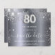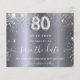 Um elegante cartão Save the Date para uma festa de aniversário 80. Um fundo metálico moderno, falso e prateado, decorado com poeira falsa. Personalize e adicione uma data e nome/idade. O texto: Salvar a Data é gravado com um script de estilo com letra de tendência grande. Número 80 com uma fonte no estilo do balão.