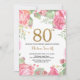Convite de Aniversário para 80 Floral para Mulheres. Flor Botânica De Aquarela. Dourada Glitter. Flores Florais De Peões Rosa. Aniversário Adulto.