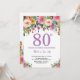 Convite de Aniversário para 80 Floral para Mulheres. Flor Floral de Aquarela. Rosa, Amarelo, Laranja, Flor Roxo. Aniversário Adulto. 30 40th 50th 60th 80 de 70 de 100th 13 de 16th 18th 20 21rua de qualquer idade. Para mais personalização, clique no botão "Personalizar" e use nossa ferramenta de design para modificar este modelo.