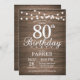 Convite de Aniversário para 80 Russo com Luzes de Cordas Fundo de Madeira. 16º 18º 21rua 30 40º 50º 60º 80 90 100º, Qualquer idade. Para mais personalização, clique no botão "Personalizar" e use nossa ferramenta de design para modificar este modelo.