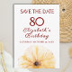 80th Birthday Yellow Flower, Elegant Save the Date