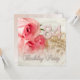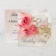 Uma bela imagem delicada de um rosa em tons cor-de-rosa suave. No fundo está uma corda de pérolas. Todo o efeito é atenuado por uma pena delicada. Um convite de aniversário 84º. Alterar a parte de trás para os detalhes do seu próprio partido