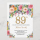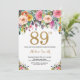 89.º Convite de Aniversário para Mulheres. Flor Floral de Água. Dourada Glitter. Rosa, Amarelo, Laranja, Flor Roxo. Aniversário Adulto.