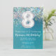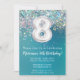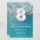 8.º Aniversário Convite Teal Silver Glitter