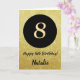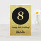 8º aniversário feliz Cartão preto e Dourado brilhante com nome personalizado. Para mais personalização, clique no botão "Personalizar" e use nossa ferramenta de design para modificar este modelo.